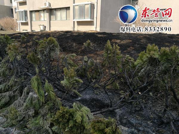 记者随即赶到现场发现,位于该小区161号楼东南侧的草坪,火灾已被熄灭,较大面积草坪已被烧焦,原本青绿的草坪外围的较矮的柏树已经被烧黑,其茎也被烧焦。记者也在现场的一辆车上发现了疑似被火烤而裂开的黑色别克后保险杠上的痕迹。