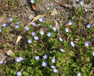 这种植物其实叫做“婆婆纳”,是一种普遍的野生草本植物,农村孩子小时候经常会用它们来扮家家酒,或者放到河里许愿。因为它们的花瓣一碰就掉所以很好采集,除了蓝色还有白色和粉色。
