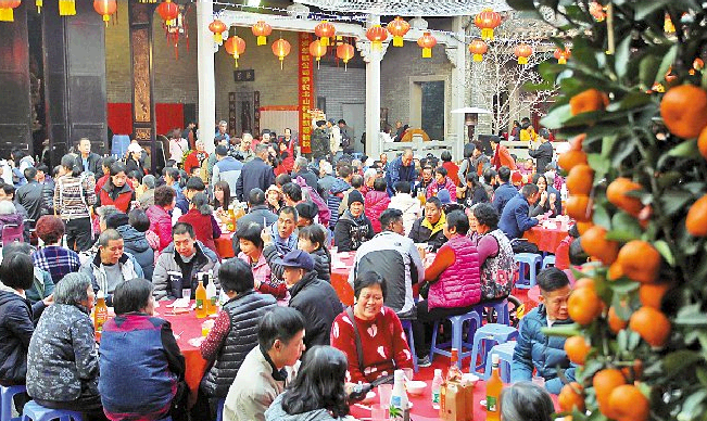 宗祠、灯笼;粤曲、醒狮;老者、乡亲;美味、佳肴……昨日下午,在“广东历史文化名村”南屏镇北山村杨氏大宗祠里,北山社区在此举办新春敬老活动,现场锣鼓喧天、醒狮起舞、粤曲声声……丰富多彩的节目依次有序地上演,大家载歌载舞、欢天喜地,其乐融融。晚上的宴席摆了200围,来自该村和港澳等地近2000人,彼此恭贺新春、互送祝福、共商村是、共谋发展。大家边吃边聊,共享节日喜庆,共话邻里情深。