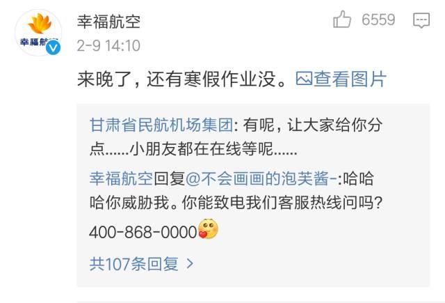 事情的起因是这样的,2月9号甘肃省民航机场集团发微博称:“各位旅客,如果您不慎将寒假作业遗失在机场内或机舱内,我们会在第一时间帮您找回,请勿无效投诉。这个锅,我们不背!”