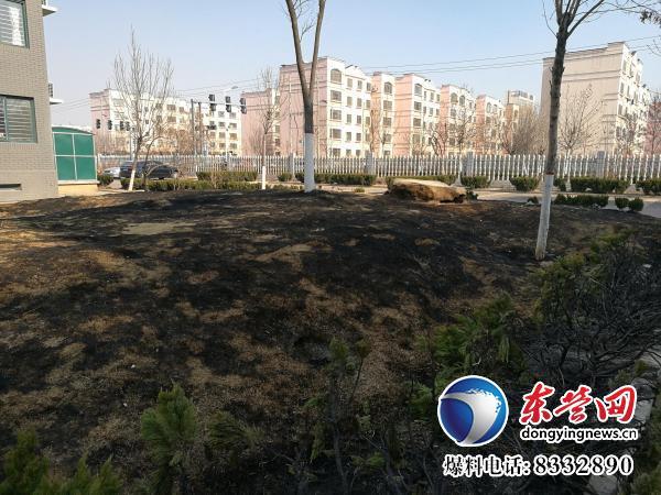 据现场目击者透露,上午11点左右,一名儿童在该草坪上燃放鞭炮,随即引发火灾。不久之后,其家长赶到现场,并找来物业工作人员。物业工作人员使用消防栓才将其扑灭。